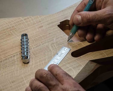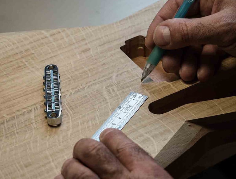 Création de guitares et basses sur mesure dans mon atelier à Mordelles.