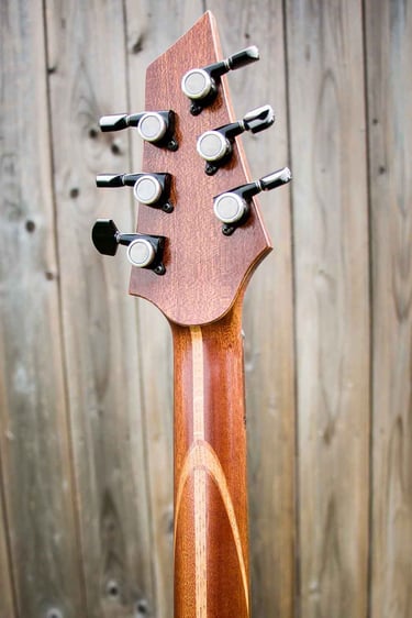 -Manche collé en acajou avec incrustation chêne