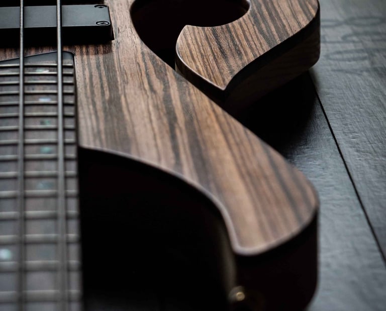 Découvrez mes réalisations personnalisées en guitares et basses.