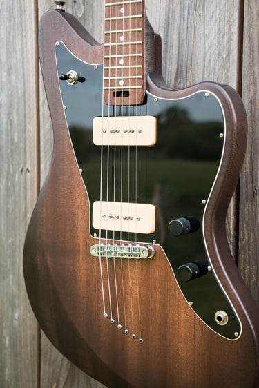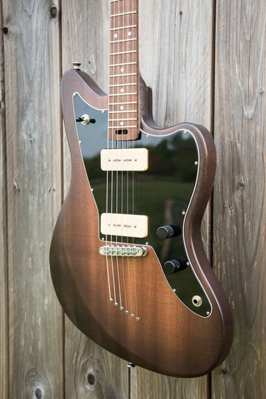 Avec son corps en acajou et légère patine noire, impression de fumée, son manche teinté, on s'imagine dans un vieux pub irlandais sentant la suie et le whisky.