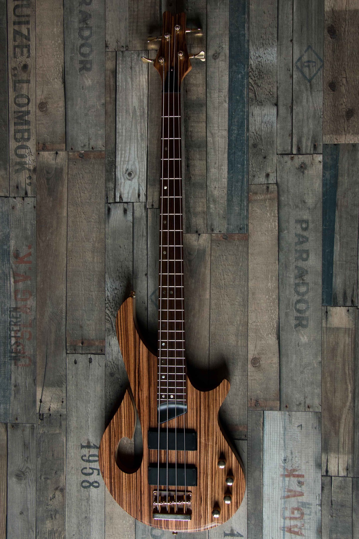 2017. Un repas entre amis. Une conversation autour de la lutherie. Et je me retrouve avec une basse entre les mains à modifier à ma guise. Un défi à relever, surtout un défi envers moi même, faire un instrument original. Et tout est (presque) possible lorsqu'on part de bois brut. Je m'inspire d'une basse trouvée sur le net en ayant un seul but: surprendre son futur propriétaire.
